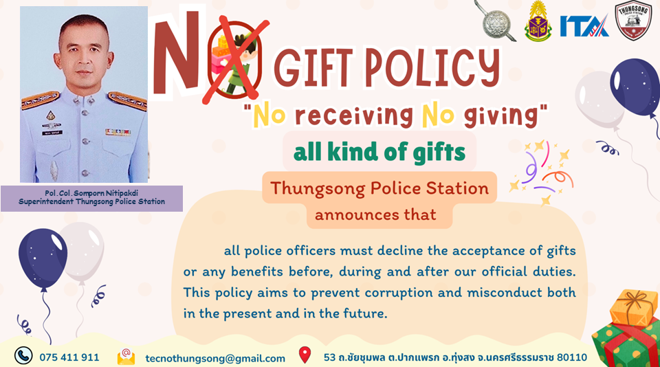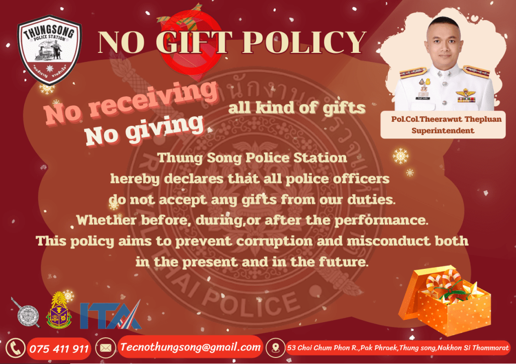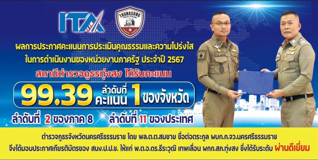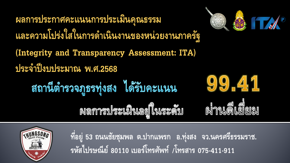 การพัฒนาสถานีในการบริการประชาชน รวม 5 ด้าน โดย พ.ต.อ.ธีระวุฒิ เทพเลื่อน ผกก.สภ.ทุ่งสง ตามนโยบายของสำนักงานตำรวจแห่งชาติ