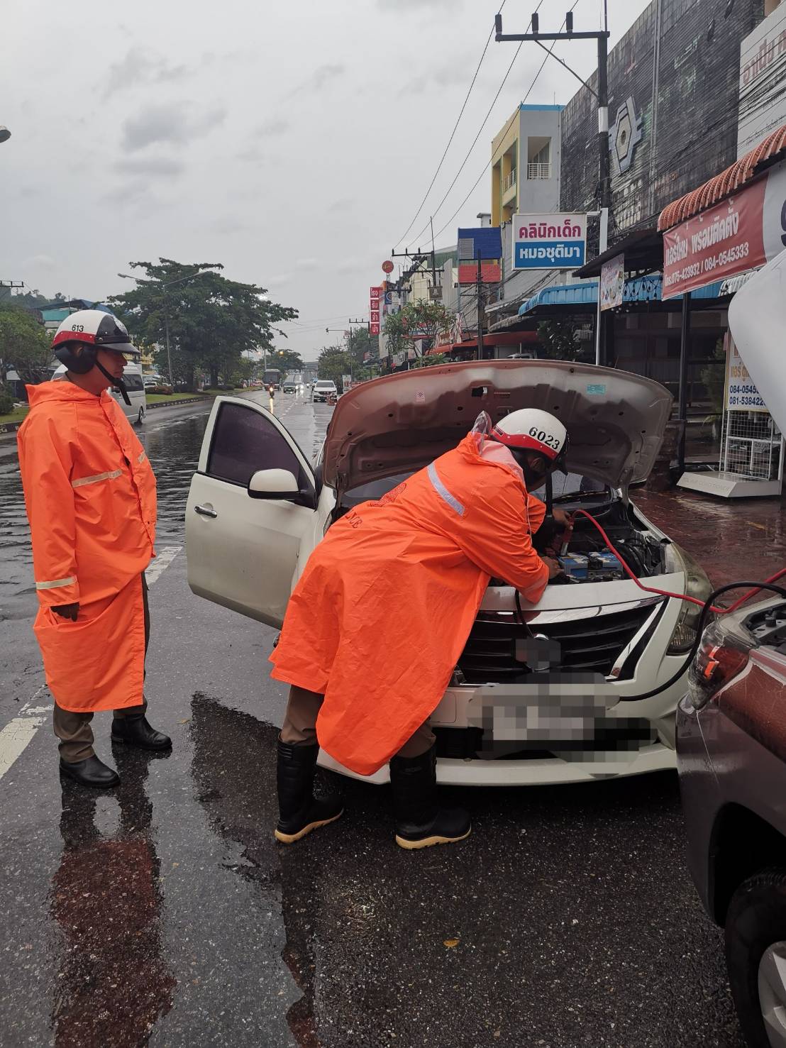 24 พ.ย.2568 เจ้าหน้าตำรวจจราจร สภ.ทุ่งสงว.4 ให้การช่วยเหลือประชาชน พ่วงแบตเตอรี่รถ บริเวณสามแยกตรัง