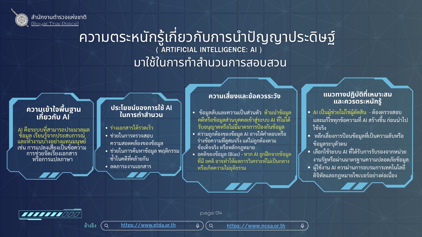 การทำสำนวนสอบสวน โดยใช้ AI 13 มีนาคม 2569 โดย admin / ผลการปฎิบัติแต่ละสายงาน,งานสอบสวน,ผลการปฎิบัติแต่ละสายงาน คู่มือ การใช้โปรแกรม เพื่อช่วยเหลือในการทำสำนวนการสอบสวน คดีอาญา โดยใช้ AI ในลักษณะเป็นความลับ Facebook iconFacebookTwitter iconTwitterLINE iconLine