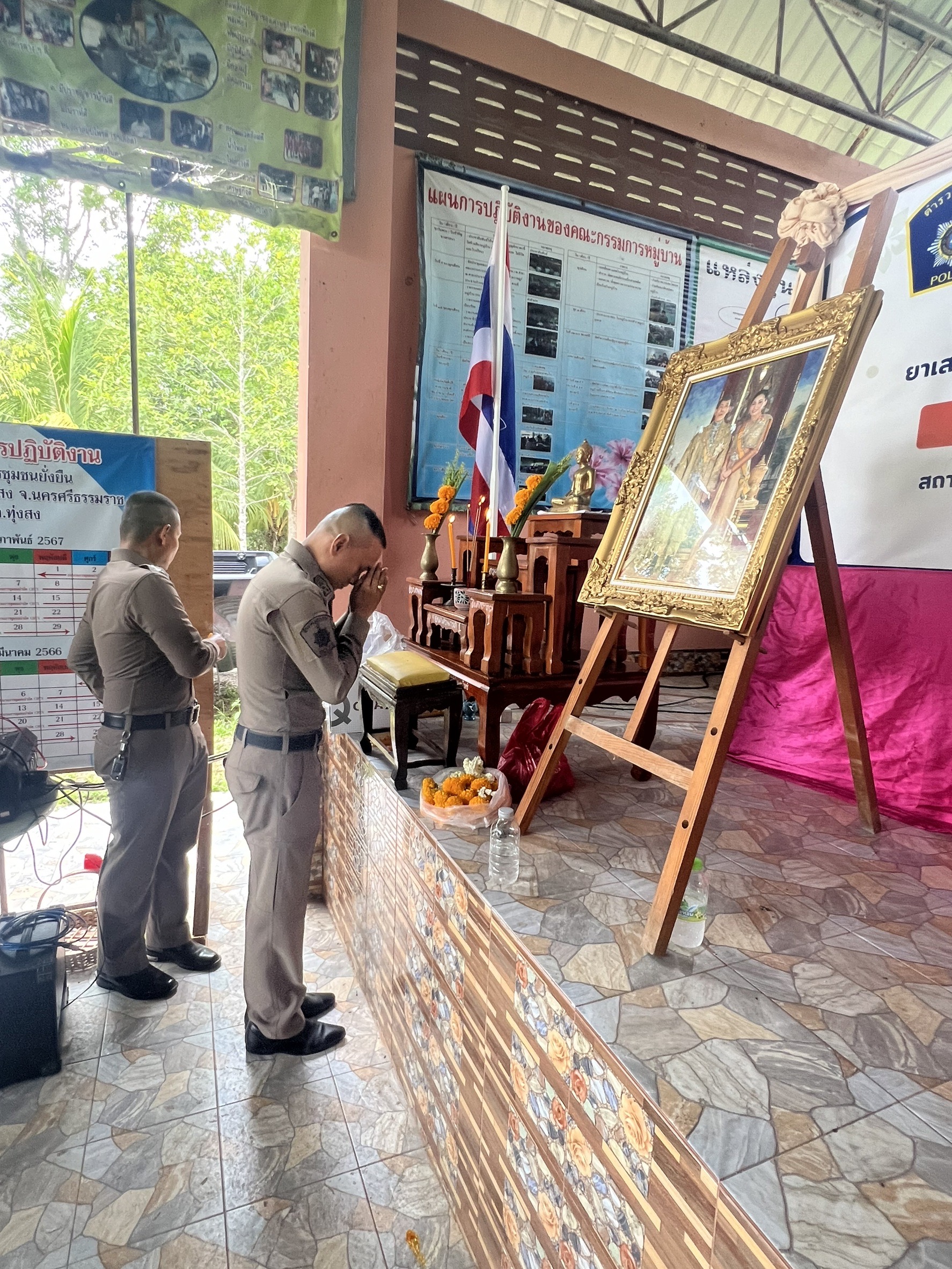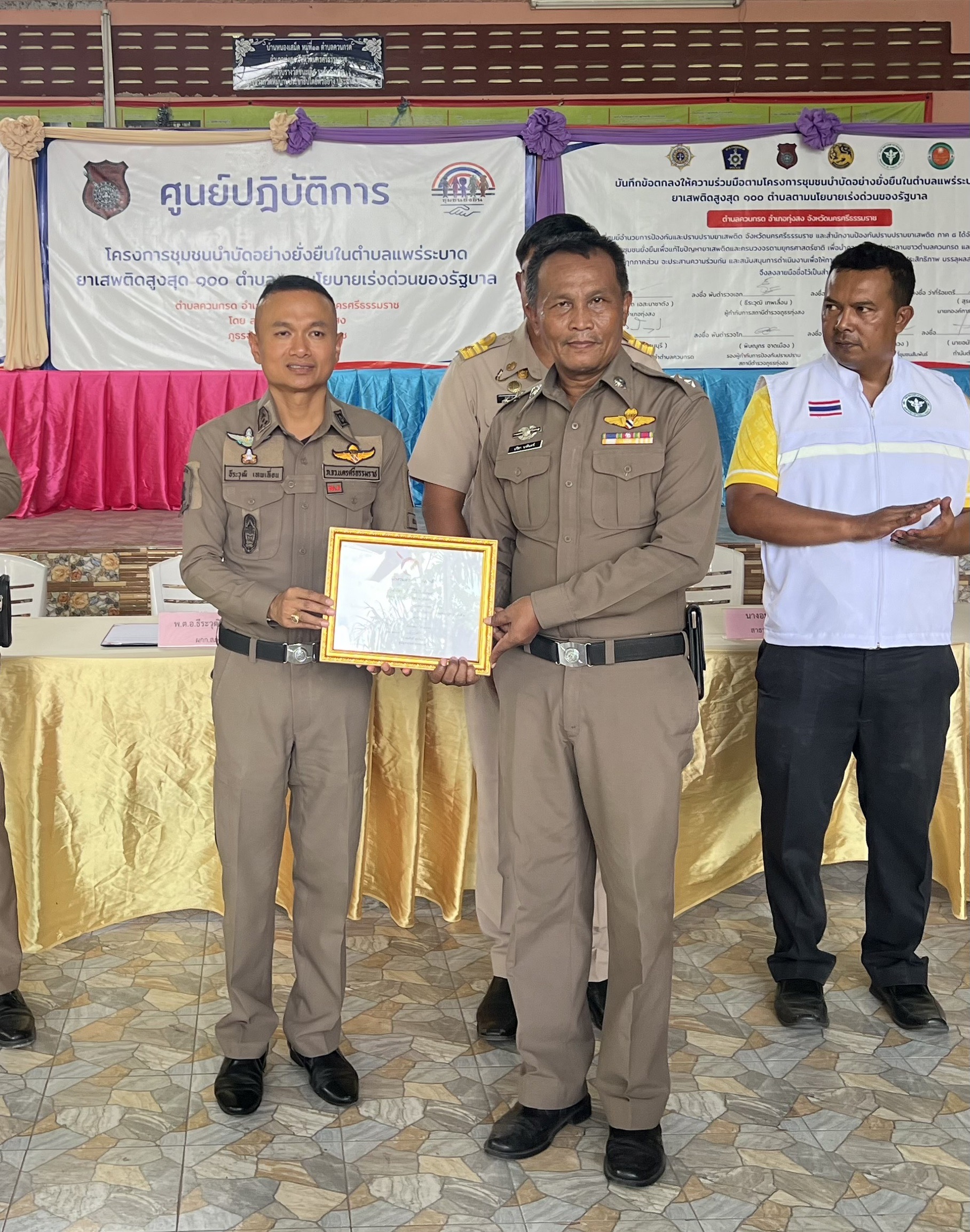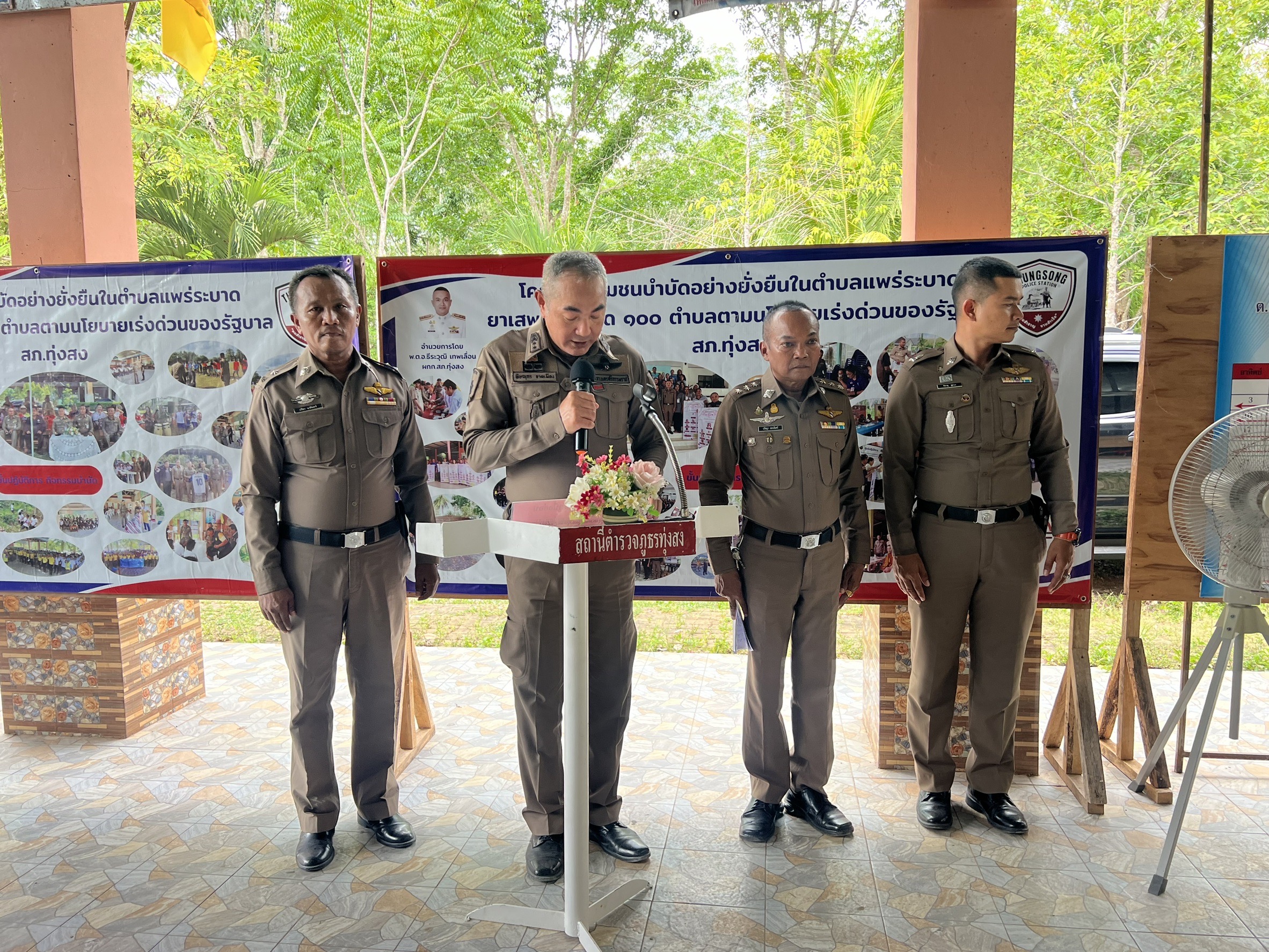 พ.ต.อ.ธีระวุฒิ เทพเลื่อน ผกก.สภ.ทุ่งสง,พ.ต.ท.พิษณุกร จาดเมือง รอง ผกก.ป.สภ.ทุ่งสง พ.ต.ต.จิรายุ ชูดวง สวป.ชส.)สภ.ทุ่งสง พร้อมด้วยชุดปฎิบัติการชุมชนบำบัด ชุด ชป.สภ.ทุ่งสง พร้อมภาคีเครือข่ายประกอบด้วย