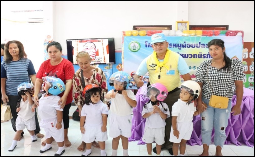 บรรยายให้ความรู้เกี่ยวกับกฎหมายจราจร และประชาสัมพันธ์การสวมหมวกนิรภัย 100% ทั้งคนขับและคนซ้อนท้าย