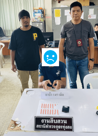 พร้อมด้วยของกลาง ยาเสพติดให้โทษประเภท 1 (ยาบ้าหรือเมทแอมเฟตามีน) จำนวน 145 เม็ด และ 402 เม็ด