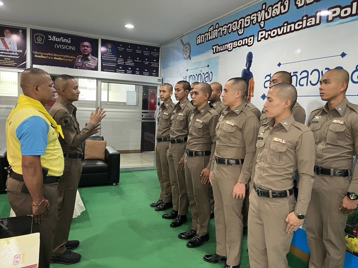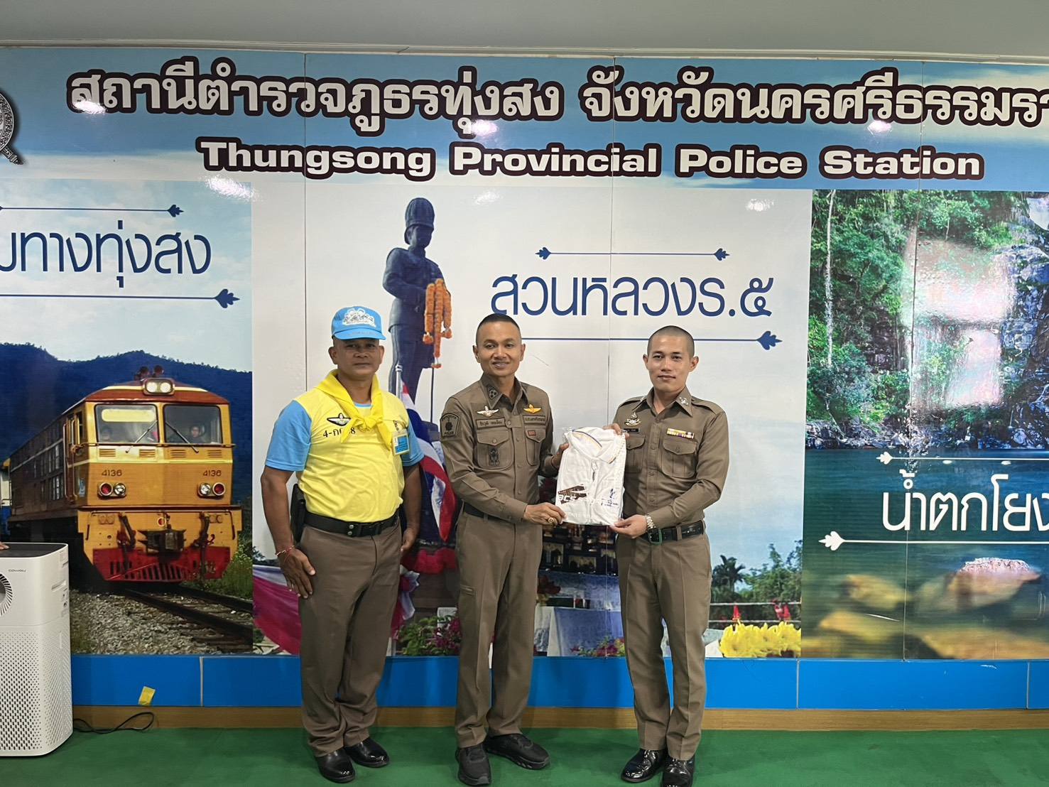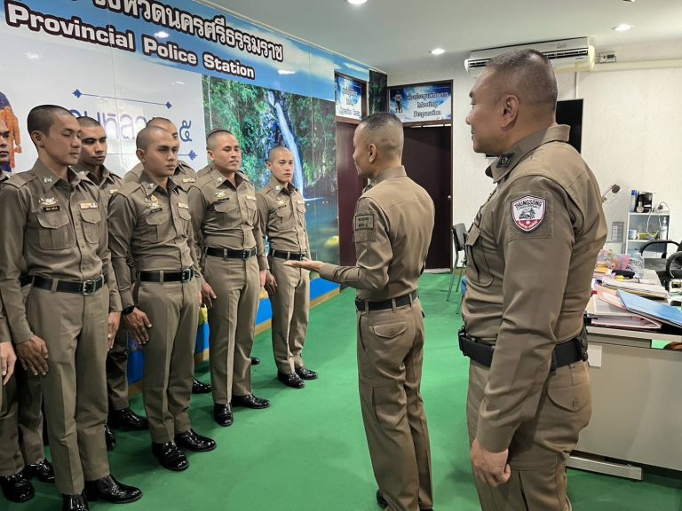 21 มีนาคม 2568 เวลา 11.45-12.30 น. พ.ต.อ.ดร.ธีระวุฒิ เทพเลื่อน. ผกก.สภ.ทุ่งสง/จิตอาสา 904 รหัส 4-ก055 พร้อมด้วย พ.ต.ท.รณภพ รำเพยเพชร รอง ผกก.ป.สภ.ทุ่งสง จิตอาสา904 รหัส4A-212 และคณะครูพี่เลี้ยง วิทยากรจิตอาสา ได้มอบเสื้อเป็นที่ระลึกพร้อมให้โอวาทแนวคิดการดำเนินชีวิตราชการในวันข้างหน้าแก่นักเรียนนายสิบตำรวจฝึกหัดราชการของหน่วย กก.8 บก.กฝ.บช.ตชด.(ทุ่งสง)รุ่นที่ 14 ที่ได้ฝึกหัดปฏิบัติราชการสำเร็จตามหักสูตรการฝึกของสำนักงานตำรวจแห่งชาติและเพื่อส่งตัวคืนกลับหน่วยต้นสังกัดเพื่อเลือกที่ลงบรรจุปฏิบัติงานต่อไป”เน้นการไม่ประมาทเสมอชีวิตตามคติของตำรวจ”