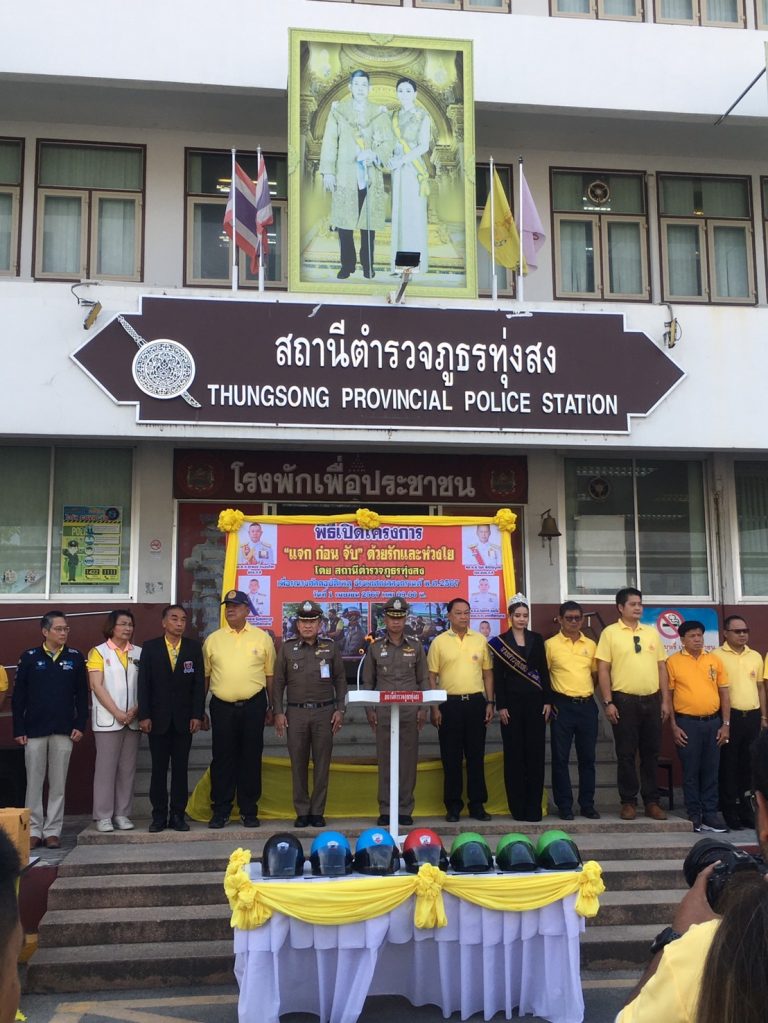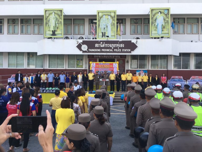 วันที่ ๑ เมษายน ๒๕๖๗ เวลา ๐๙.๐๐น. พล.ต.ต.วิมล พิทักษ์บูรพา รอง ผบช.ภ.๘ พร้อมด้วย พ.ต.อ.รังสรรค์ สุขเกื้อ รอง ผบก.ภ.จว.นศ. พ.ต.อ.ธีระวุฒิ เทพเลื่อน ผกก.สภ.ทุ่งสง พ.ต.ท.พิษณุกร จาดเมือง รอง ผกก.ป.สภ.ทุ่งสง พ.ต.ท.ศักดา ทองประพันธ์ รอง ผกก.สส.สภ.ทุ่งสง พ.ต.ท.ธีระยุทธ์ จันทร์ศรีนาย สว.ธร.สภ.ทุ่งสง พ.ต.ต.ธวัช ปราบปราม สวป.ทุ่งสง พร้อมด้วย นายถิรนารถ เอสะนาชาตัง นายอำเภอทุ่งสง นายสมใจ จิตวิรัตน์นุกูล รอง นายกเทศมนตรีเมืองทุ่งสง หัวหน้าส่วนราชการ สโมสรไลออนทุ่งสง โรงพยาบาลทุ่งสง ธนบุรี มูลนิธิประชาร่วมใจทุ่งสง กลุ่มมอเตอร์ไซรับจ้าง บริษัทโตโยต้าทุ่งสง บริษัทห้องร้านต่างๆ