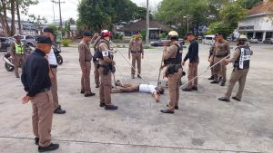 พ.ต.อ.สมพร นิติภักดิ์ ผกก.สภ.ทุ่งสง ตรวจการฝึกประจำสัปดาห์