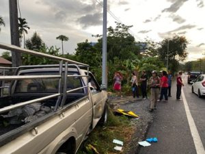 ร.ต.อ.หญิง กาญจนา ธนาวุฒิ รอง สว.(สอบสวน)ฯ ออกตรวจสถานที่เกิดเหตุรถเฉี่ยวชน
