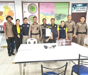 เจ้าหน้าที่ตำรวจร่วมกับฝ่ายปกครองอำเภอทุ่งสง จับกุมตัวผู้ต้องหาได้พร้อมของกลางอาวุธปืน
