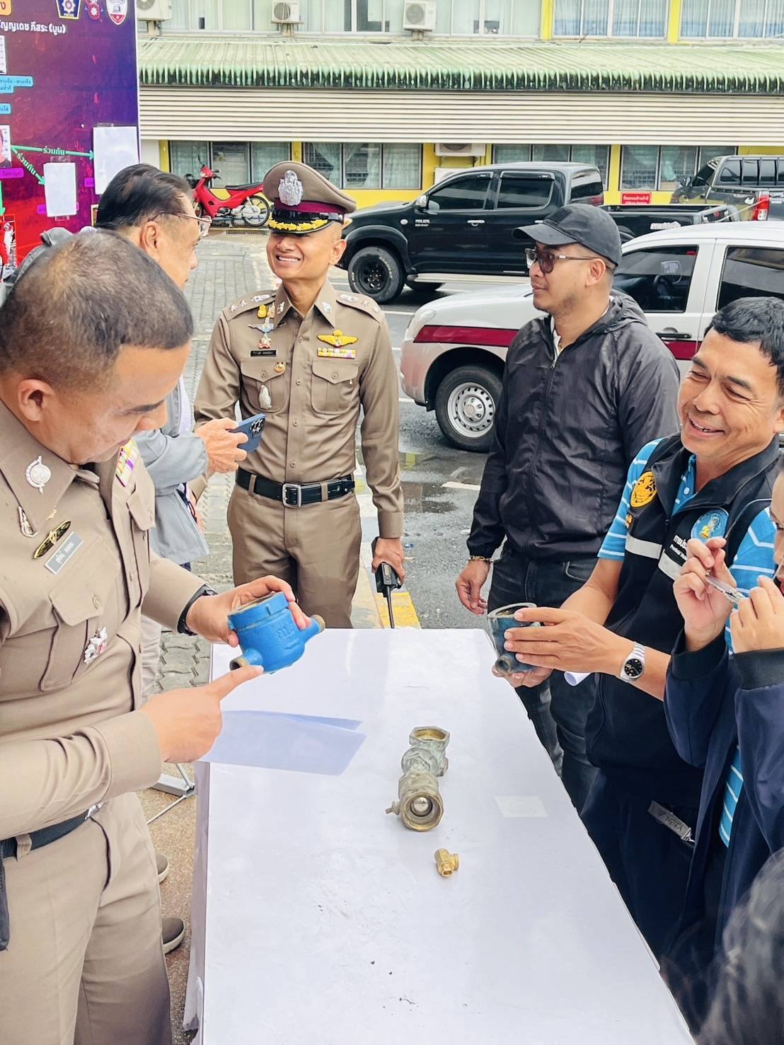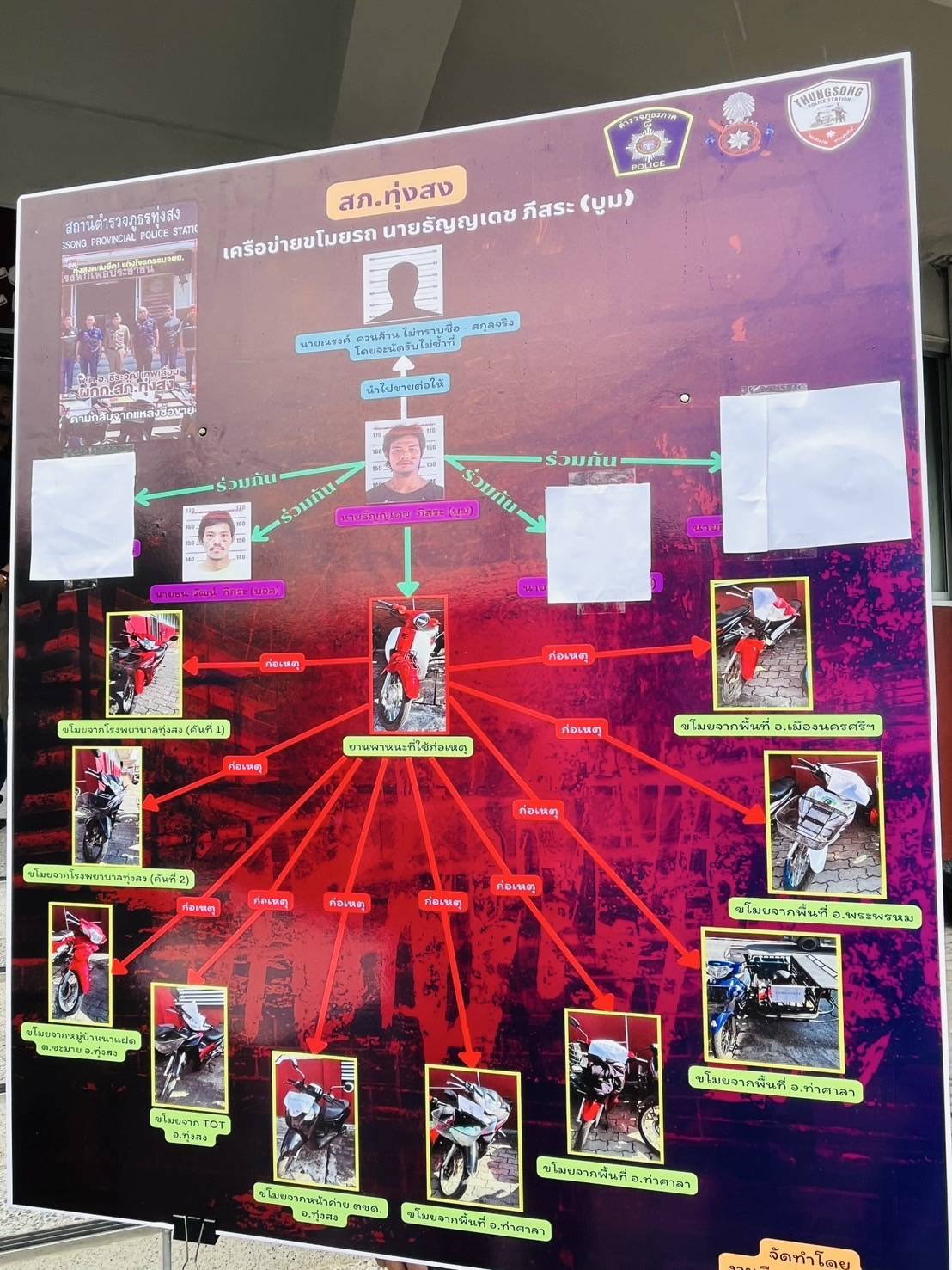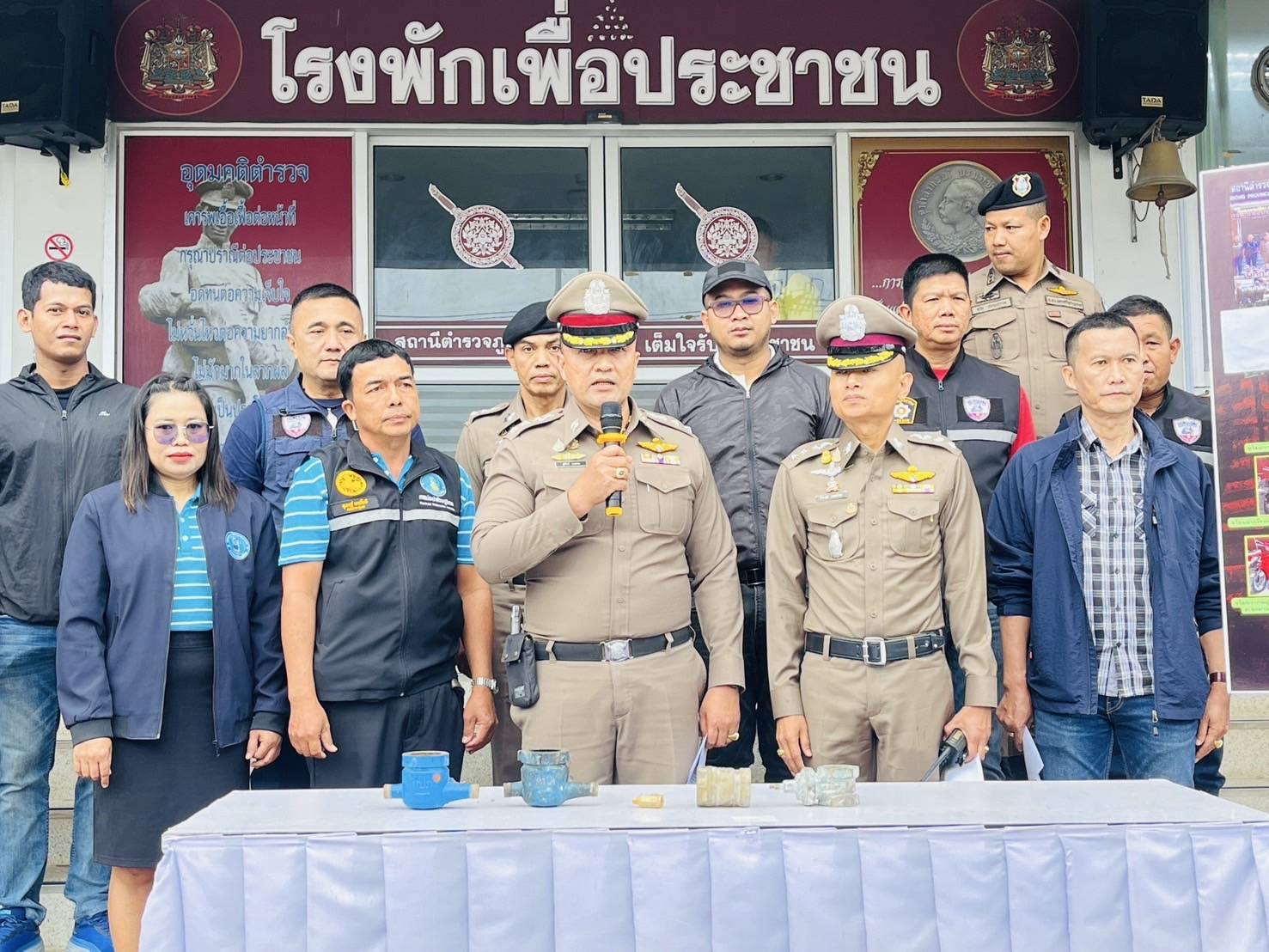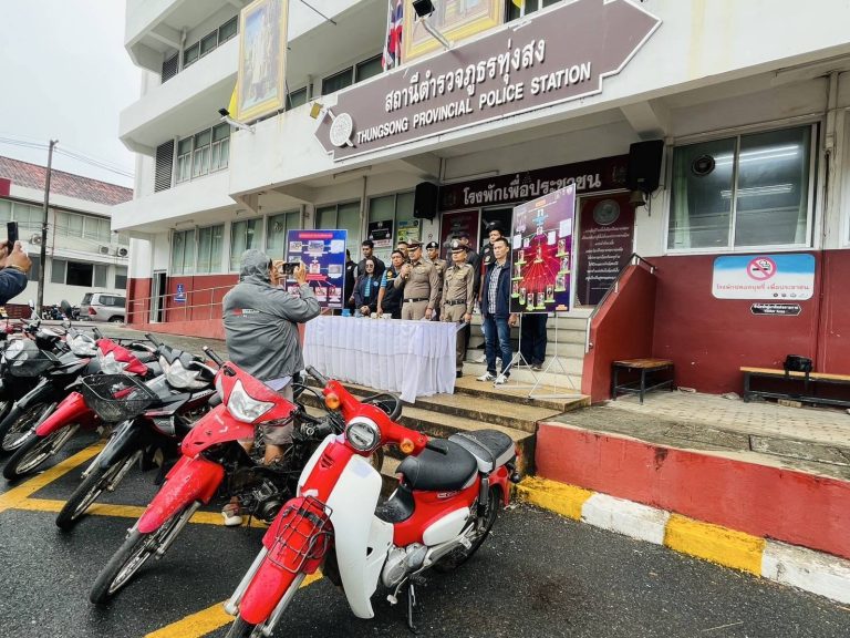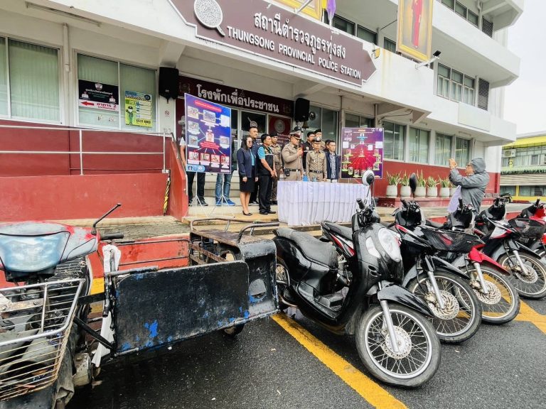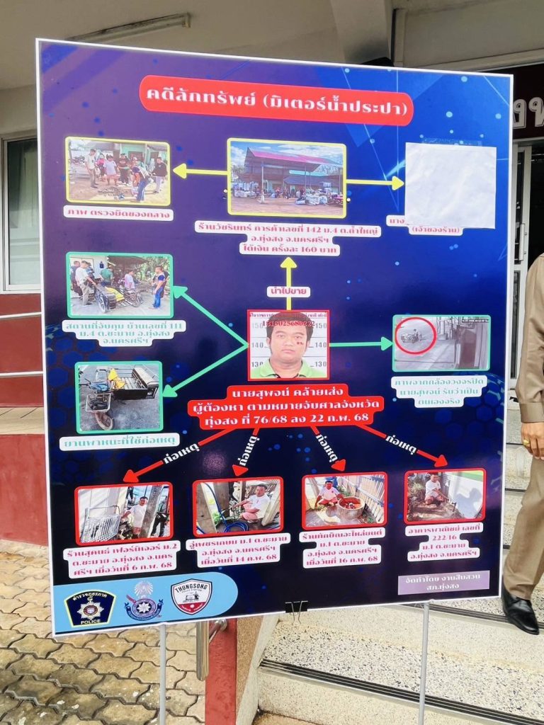 23 ก.พ.2568) เวลา 14.00 น. ภายใต้การอำนวยการของ พล.ต.ต.จารุต ศรุตยาพร ผบก.ภ.จว.นครศรีธรรมราช มอบหมายให้ พ.ต.อ.สุทัศน์ สงสยม รอง ผบก.ภ.จว.นครศรีธรรมราช พร้อมด้วย พ.ต.อ.ดร.ธีระวุฒิ เทพเลื่อน ผกก.สภ.ทุ่งสง ,พ.ต.ท.ธีรภัทร ตรีเภรี รอง ผกก.(สอบสวน)ฯ,พ.ต.ท.ศิวกร ฉิมพาลี รอง ผกก.(สอบสวน)ฯ ,พ.ต.ท.ศักดา ทองประพันธ์ รอง ผกก.สส.ฯ ,พ.ต.ท.จรัสโชติ บุญปล้อง สว.สส.ฯ,พ.ต.ท.ธวัชปราบปราม สวป.ฯ ,ชุดสืบสวน สภ.ทุ่งสง ,เจ้าหน้าที่การประปาส่วนภูมิภาคอำเภอทุ่งสง ,สื่อมวลชน ร่วมกันแถลงข่าวการโจรกรรมรถจักรยานยนต์ และมาตรวัดน้ำประปาในพื้นที่อำเภอทุ่งสง จนสามารถนำไปสู่การจับกุมคนร้ายมาดำเนินคดี
