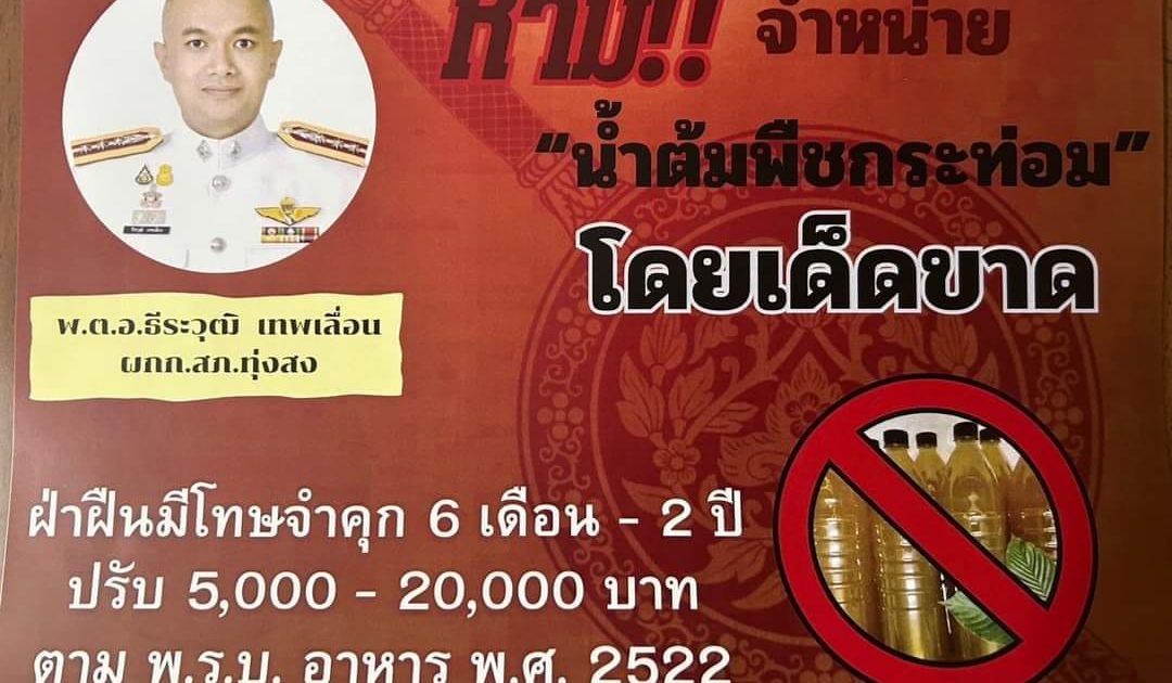 ห้ามจำหน่ายน้ำต้มพืชกระท่อม โดยไม่ได้รับอนุญาต
