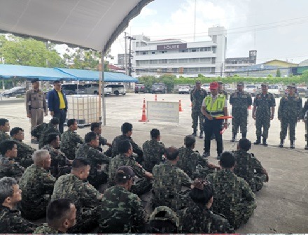 วันที่ 25 มีนาคม 2568 เวลา 10.00 น. พ.ต.ต.ศักด์ธัชญ์ ธนโชคพัธนันท์ สวป.สภ.ทุ่งสง ร.ต.อ.นิกร จิตรอักษร รอง สว.จร.สภ.ทุ่งสง พร้อม ชุดปฏิบัติการจราจร และเจ้าหน้าที่ฝ่ายปกครองอำเภอทุ่งสง ร่วมเปิดโครงการอาสาจราจรอบรมให้ความรู้เกี่ยวกับกฎหมายจราจร และ วิธีการอำนวยความสะดวกด้านการจราจรให้กับสมาชิกกองอาสารักษาดินแดน ได้ประชาสัมพันธ์ รณรงค์ การสวมหมวกนิรภัย ทั้งคนขับและคนซ้อน แก่ผู้เข้าร่วมกิจกรรม
