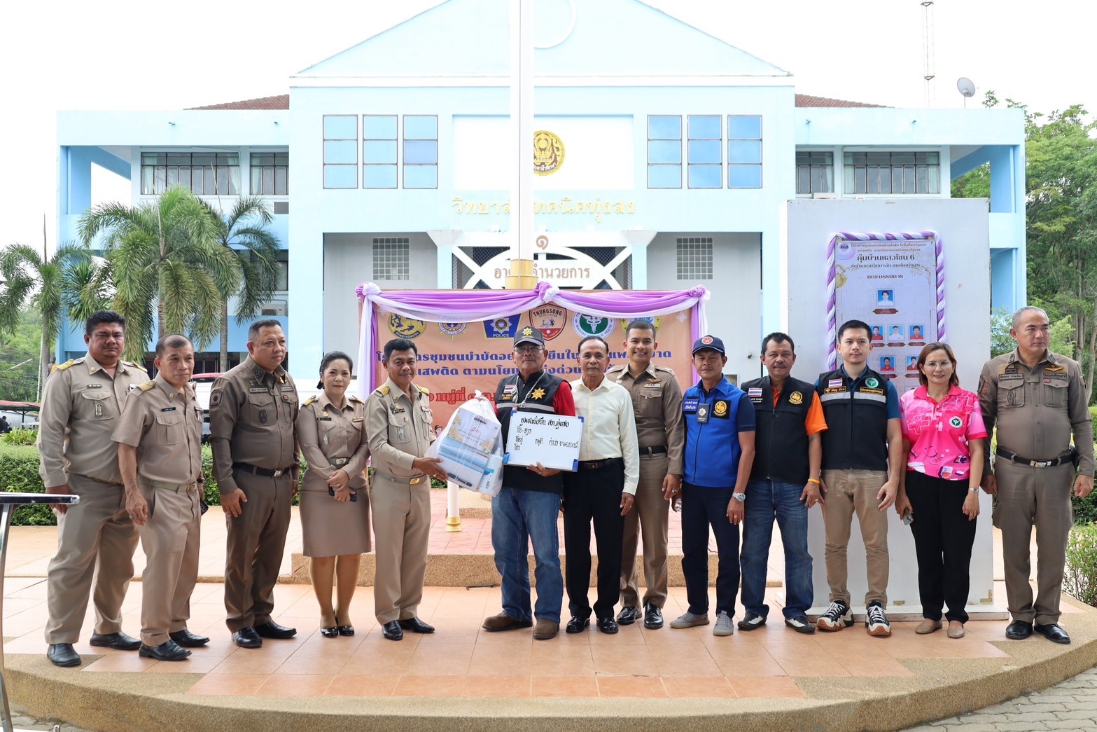 25 มิ.ย.2567 เวลา 13.00 น. พ.ต.อ.ธีระวุฒิ เทพเลื่อน ผกก.สภ.ทุ่งสง มอบหมายให้ พ.ต.ท.พิษณุกร จาดเมือง รอง ผกก.ป.สภ.ทุ่งสง (เป็นผู้กล่าวรายงาน),พ.ต.ต.จิรายุ ชูดวง สวป.(ชส.)สภ.ทุ่งสง พร้อมด้วยชุดปฎิบัติการชุมชนบำบัด ชุด ชป.สภ.ทุ่งสง พร้อมภาคีเครือข่ายเข้าร่วมกิจกรรมโครงการชุมชนบำบัดอย่างยั่งยืน ในพื้นที่แพร่ระบาดยาเสพติด ตามนโยบายเร่งด่วนของรัฐบาล