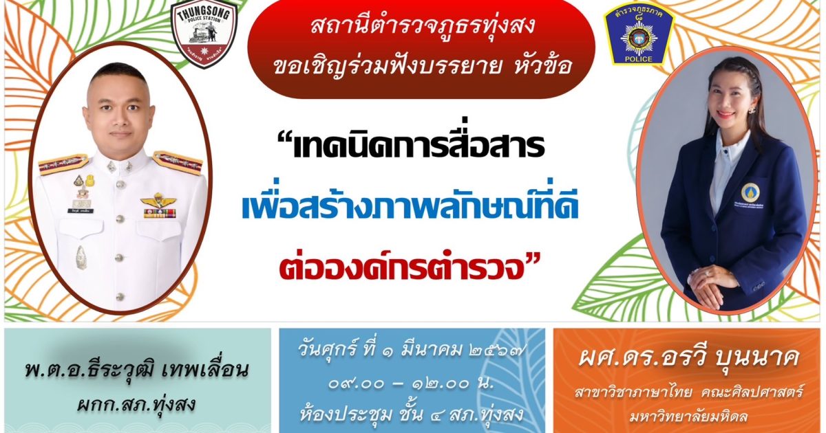โครงการเทคนิคการสื่อสาร เพื่อสร้างภาพลักษณ์ที่ดีต่อองค์กรตำรวจ และสร้างคุณธรรม ความโปร่งใส ในหน่วยงาน