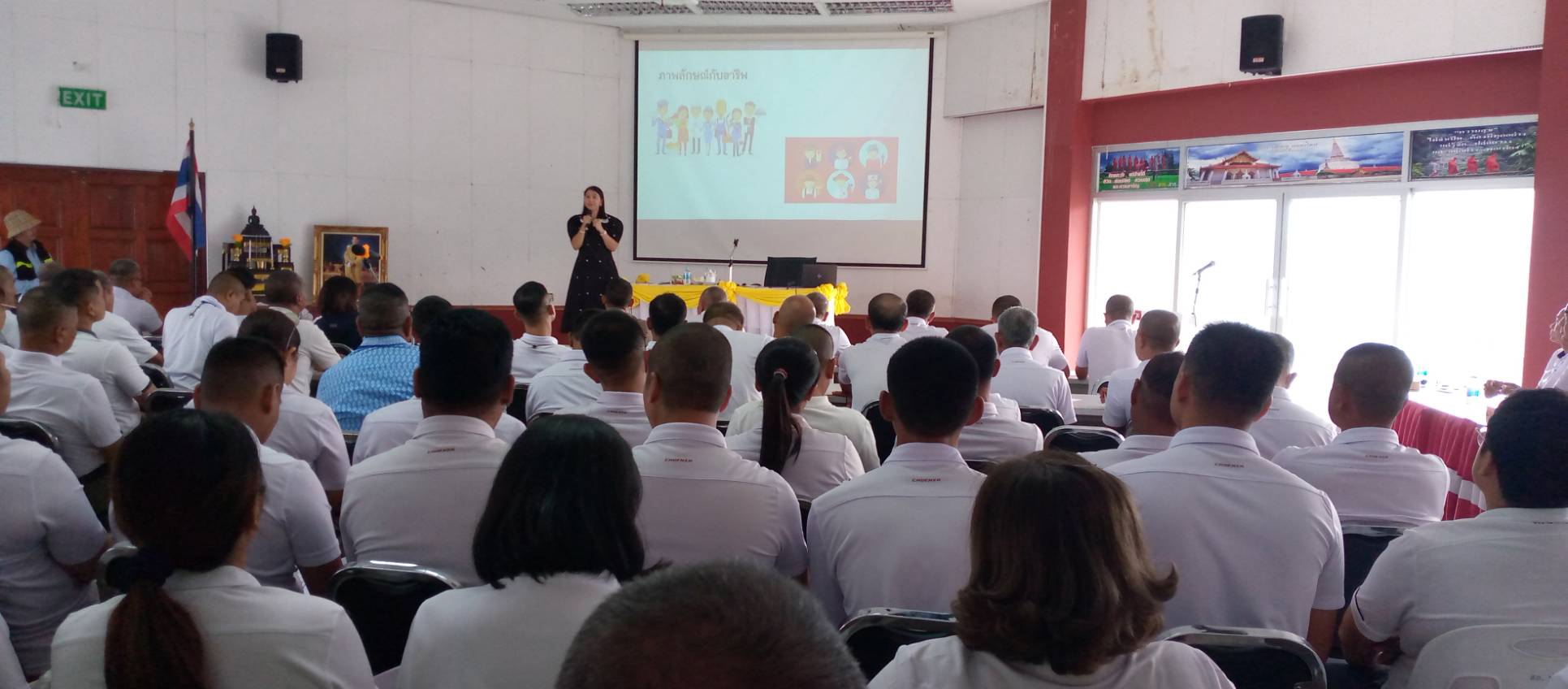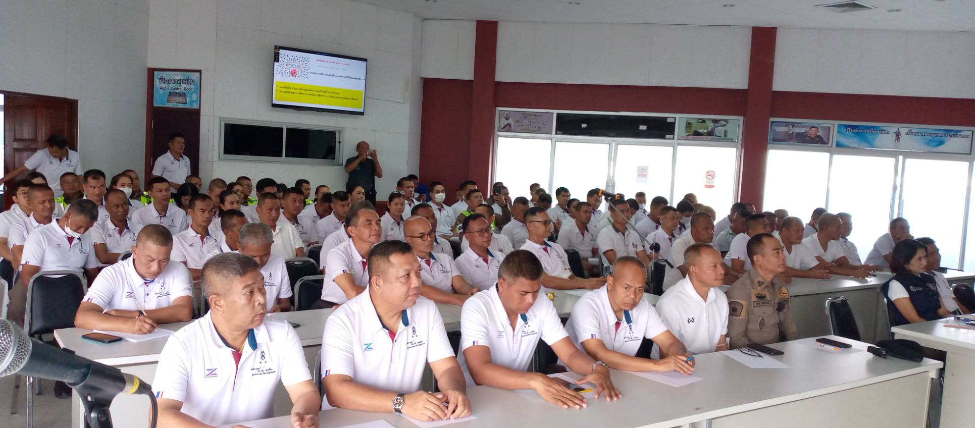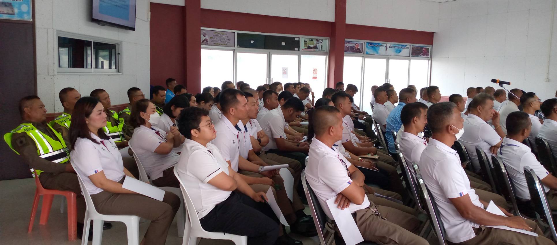พ.ต.อ.ธีระวุฒิ เทพเลื่อน ผกก.สภ.ทุ่งสง นำข้าราชการตำรวจในสังกัด สภ.ทุ่งสง ทุกแผนกงาน ทุกนาย ร่วมฟังบรรยาย