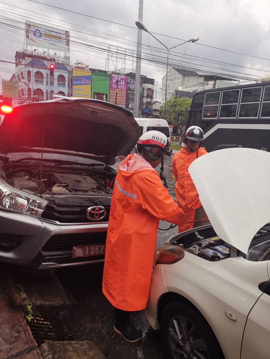 24 พ.ย.2568 เจ้าหน้าตำรวจจราจร สภ.ทุ่งสง 📍ว.4 ให้การช่วยเหลือประชาชน พ่วงแบตเตอรี่รถ บริเวณสามแยกตรัง