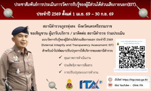 พ.ต.อ.สมพร นิติภักดิ์ ผกก.สภ.ทุ่งสง ได้ประชาสัมพันธ์ข้อมูลคุณธรรมและความโปร่งใส ในการดำเนินงานหน่วยงานภาครัฐ ให้กับข้าราชการตำรวจ สภ.ทุ่งสง เพื่อจะได้แนะนำให้ประชาชนร่วมประเมินความพึงพอใจ (EIT)2026 ดูรายละเอียด